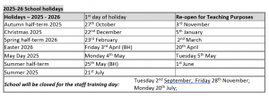 Please visit the Durham County Council website to view or download the school holidays dates for this academic year and next year for all community schools, special schools and voluntary controlled schools.